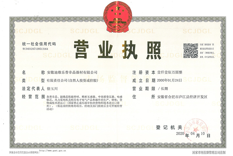 安徽迪維樂普非晶器材有限公司從2013年起至今每年捐贈安徽省合肥市廬江縣長崗中學和廬江縣水關中學助學金8萬元。